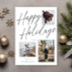 Este cartão de Natal fotográfico casual, mas elegante, apresenta três fotos e lê "Festas Felizes" em uma fonte de texto cursivo preta.