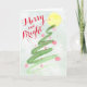 Este cartão de Natal divertido apresenta uma árvore de Natal de abstrato pintada manualmente, composta de traços de tinta e manchas ou pontos giratórios. A legenda diz:Feliz e Brilho. Dentro é espaço para sua própria foto, assim como uma saudação e assinatura personalizadas. Maneira bonita e artística de desejar aos seus amigos e família uma feliz temporada de férias.