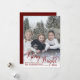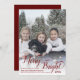 Esta simples carta é elegante e minimalista. Ele apresenta uma foto de quadro de cheio com um roteiro de caligrafia de burgundy lendo "Feliz e Brilho". Há espaço para seus nomes e o ano. Uma bela maneira de enviar desejos calorosos para o Natal ou a época de férias.