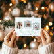 Espalhe alegria natalina com este cartão de Natal elegante e personalizável. Com três recortes de fotos estilizados como enfeites pendurados com laços pastéis, este design é perfeito para mostrar sua família, filhos e até seus amigos peludos. O fundo branco limpo destaca a mensagem festiva, “Desejamos Felizes Festas”, em grafia elegante, com espaço abaixo para sua assinatura personalizada. Uma maneira moderna e calorosa de enviar amor e alegria a amigos e familiares nesta época de festas.