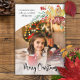 Molas coloridas e festivas das folhas de outono e verde-inverno e bagas com caligrafia personalizada Saudação de Natal Feliz e modelo fotográfico curvado com campos de texto editáveis.