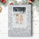 Folhagem branca, pontos e bagas em uma bela cinza prateada (ou qualquer cor que combine com a sua foto) destacam sua foto favorita com seus nomes e saudando em letras quentes no fundo. Selecione Matte para o papel mais pesado e alta definição para melhor qualidade de impressão.