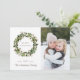 Cartão de feriado fotográfico personalizado com design ruidoso de algodão de Natal na frente, padrão de verificação de búfalos verdes na parte de trás.