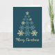 Cartão de Férias da Família de Árvores de Natal Snowflake. O design tem uma elegante árvore de Natal em floco de neve na frente, uma foto e um dentro de mensagens personalizadas.