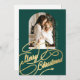Elegante na moda Merry Christmas faux gold clássico calliografia clássica família de script de fotografia verde de fotografia com o seu texto personalizado em ambos os lados. ++++++++ OBSERVEM que a cor de fundo é editável. Você pode alterá-la depois de selecionar a opção PERSONALIZAR abaixo do menu PERSONALIZAR TI. Se você não se sentir à vontade mudando-o, peça ajuda ao Zazzle Live Design ou ao designer.