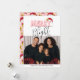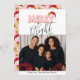 Esta Feliz festiva & Brilhante foi criada usando uma fonte moderna e divertida e minha letra de bloqueio à mão em um estilo retrorreflector em rosa pálido e vermelho tocado com minha mão pintou o chapéu de Papai Noel com holly e bagas para fazer sua foto de família brilhar como estrela. Adicione seu nome de família e texto personalizado para completá-lo! Arte original de Malissa Melrose.