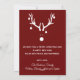Na frente: fundo vermelho escuro. Com flocos de neve brancos, folhagem e bagas como decoração. Personalize e adicione sua foto de família e seu nome de família. Com o texto: Feliz Natal escrito com um roteiro de estilo manuscrito. Cartas brancas. Fundo: fundo vermelho e uma imagem moderna, engraçada, abstrato de uma rena em branco. Modelos para os desejos de férias, saudações e os nomes dos membros da família.