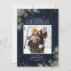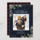 Compartilhe seus desejos de Natal e sua foto favorita da família de feriados este ano com este design de Cartão de Natal azul rústico marinho, com tipografia manuscrita, sua foto favorita, xadrez de búfalos burguentos nas costas, luzes de fada e grampos de pinheiro com flocos de neve prateada. Copyright Elegant Invites, todos os direitos reservados.