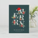 Cartão De Festividades Foto da Folhagem de Natal Feliz Verde Vermelho