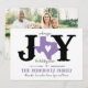 Desejar alegria para amigos e família do tamanho do Texas nesta temporada de férias é fácil com este design. O "O" de alegria é substituído pela forma do Texas com um coração cortado do centro. Letra no estilo ocidental em conjunto com texto escrito à mão. Personalize a frente com seus nomes familiares e as costas com sua foto favorita. Design permite que você escolha suas próprias cores. Vem em vermelho, verde, azul, lavanda, aqua, marrom, laranja queimado, ouro e prata. Produtos correspondentes disponíveis.