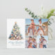 Elegante personalizado de aquarela Árvore de Natal Praia Cartão de Feriado de Férias Seashell Starfish Coral. Espalhe a alegria de feriado com uma reviravolta de praia neste cartão de Natal horizontal, com espaços para três fotos da família para torná-lo exclusivamente seu. Perfeito para quem ama o oceano ou vive em pontos tropicais como a Flórida, o Havaí, ou as Bahamas, esta design apresenta uma charmosa árvore de Natal feita de conchas, estrelas-do-mar e coral em matizes serenos e azuis. A aquarela fica em uma base arenosa, tocada com uma estrela para um toque de feriado costeiro. Fontes simples misturadas com tipografia de scripts adicionam um toque casual e elegante à sua mensagem de feriado. Disponível como cartão impresso ou arquivo digital para download para e-mail ou impressão local, é uma maneira maravilhosa de trazer surf e areia para seus cartões de natal. Disponível como cartão impresso ou como cartão digital para download que você pode enviar por e-mail ou que tenha impresso localmente!