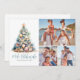 Cartão de Férias de Praia da Árvore de Natal Mele Kalikimaka. Comemore as festas com uma vibração costeira usando este cartão de Natal horizontal, com espaço para três fotos da família para torná-lo verdadeiramente pessoal. Ideal para amantes do oceano ou para quem vive em destinos tropicais como o Havaí, a Flórida, ou as Bahamas, esta design apresenta uma árvore de Natal caprichada feita a partir de conchas, estrelas e corais em tons rasos e azuis. A aquarela repousa sobre uma base arenosa, tocada com uma estrela-estrela para um toque festivo à beira-praia. Por baixo tem "Mele Kalikimaka", Feliz Natal no Havaí. Uma mistura de fontes limpas e um roteiro elegante adiciona uma sensação relaxada mas refinada ao seu cartões de natal. Escolha entre um cartão impresso ou um download digital para compartilhamento fácil ou impressão local, trazendo um splash de surf e areia para seus desejos sazonais!