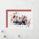 Feliz Natal! Envie desejos de férias e saudações com este cartão com fotos de férias elegante e vintage. Apresenta ilustrações de cor d'água da poinsettia vermelha com verde. Personalize este cartão floral de Natal adicionando a sua foto favorita, saudação, nomes e outros detalhes. Os textos são perfeitamente editáveis. Disponível como cartão plano, cartão dobrado e cartão postal.