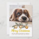 Cartão De Festividades Foto de Cão Feliz Natal Nome da Família Gold Foil