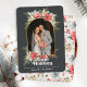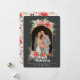 Da Farmhouse Poinsettia Christmas & Holiday Collection: Farmhouse Poinsettia Newlywing Arranjou Cartão de Natal de Férias, com Belo Cartões de natal de Tipografia, "Feliz Feriados", e Nome da Família Personalizada. Adicione facilmente sua fotografia de casamento ou feriado e envie uma mensagem para esta maravilhosa Modelo do Cartão de Natal. Em 4 opções diferentes, esta opção apresenta uma cor preta escura de fundo, e uma bonito poinsettia aquática e fundo verde em madeira branca de caserna de fazenda! Uma combinação clássica e rústica que irá abençoar toda a sua família e amigos que receberem o seu cartão este ano!
