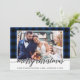 Cartão De Festividades Foto de Casamento de Xadrez Azul com Caligrafia Mo