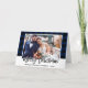 Cartão De Festividades Foto de Casamento de Xadrez Azul com Script de Pin