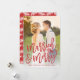 Faça uma declaração impressionante nesta temporada de festas com este cartão de festas com na moda cheio sangrando 1 com fotografia apresentando "casado e feliz" em um moderno roteiro de pincel que é perfeito para o casal recém-casado.
