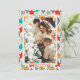 Natais vintages em ornamentos de árvores em vermelho, ouro, roxo, turquesa e menta, e suas saudações e nomes chic em volta de sua foto favorita. *ADICIONE mais fotos ou informações no verso. Selecione Matte para o papel mais pesado e alta definição para melhor qualidade de impressão. ***Cartão HORIZONTAL feito para você em nossa loja.