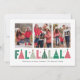 Um Cartões de foto de Natal moderno, colorido e caprichoso que inclui a palavra "FA LA" em letra manuscrita. Há espaço para 3 fotos e sua própria mensagem personalizada na frente e atrás.