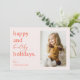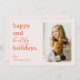 Cartão de Natal moderno e simples para 2021, com texto tipográfico rosa e vermelho, com um roteiro que diz "feriados felizes e saudáveis".