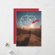 Excelente para cartões de ano novo também; carta à mão "alegria" com trabalhos de linha ornamental e uma faixa com o ano editável. Letra branca com faixa vermelha escura sobre uma foto de sangria de cheio. As formas cortadas são opcionais, com mais opções disponíveis.