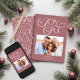 Rosa moderno Cartões com fotos alegres de Natal com uma tipografia de tendências e um padrão rústico, porém moderno, de pinheiro e verde de inverno em cor-de-rosa poeirento de madre na moda. Entre em contato conosco em cedarandstring@gmail.com se precisar de assistência com o design ou produtos correspondentes.
