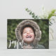 Celebre a temporada com este cartão festivo com a foto do tamanho do seu cheio e a palavra "alegre" em letras brancas. Adicione seu nome e data para personalizar. A parte de trás apresenta um padrão de bolinhas espiritual na cor de sua escolha.