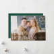 Cartão de Natal simples e moderno, mostrando sua foto de sangria de cheio com "Feliz Natal" em uma camada branca de tipografia de tendências. Personalize a frente do cartão de feriado adicionando seu nome e o ano. O cartão de feriado moderno inverte-se para apresentar um padrão de lista branca contra um fundo verde escuro ou a cor de sua escolha.
