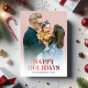Cartão de feriado contemporâneo com uma foto da família, as palavras "feriados felizes" em um tipo elegante de gradiente vermelho, seu nome de família e o ano.