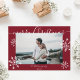 Foto moderna, simples e feliz script de natal snowflakes, em vermelho editável