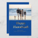 Cartão de Férias Feliz Hanukkah de Folha Azul e Dourada. Adicione sua foto de família para personalizá-la.