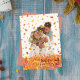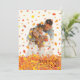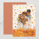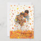 Folhas de outono caindo sobre a foto de sua família com uma saudação "feliz outono para vocês".