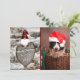 Chapéu xadrez vermelho Gnome, cartão de Natal de foto de família de coração talhado de madeira falsa de casca de bétula rústica moderna