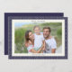 Este design moderno de Hanukkah apresenta uma borda geométrica azul-marinho com um toque sutil de meados do século e tipografia limpa. O layout destaca uma foto de família em uma orientação horizontal simples, perfeita para enviar votos calorosos durante o Festival das Luzes. Personalize a mensagem no verso para torná-la exclusivamente sua.