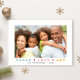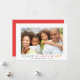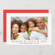 Um cartão de cartões de natal de Natal que apresenta a sua foto favorita da família, "Paz", "Amor" e "Alegria" em cores lacrimogêneas, cor-de-rosa e douradas, com cada palavra separada por um coração vermelho. Na parte inferior você pode adicionar seu nome de família e o ano.
