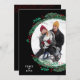 Uma coroa de galhos de pinheiros, bagas e folhas em um fundo preto rodeia sua foto favorita com sua saudação em letras quicas na frente e sua personalização e uma mensagem mais longa nas costas. ESCOLHA pontos vermelhos ou brancos no verso. Selecione Matte para o papel mais pesado e alta definição para melhor qualidade de impressão.