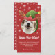 Este cartão festivo de saudação 4x8 é perfeito para todos os amantes do cão em sua vida! Apresentando uma fotografia adorável de um cão vestindo um chapéu de elfo com chifres de renas contra um fundo vermelho, esta carta divertida traz certamente um sorriso para o rosto de todos. A foto pode ser mudada para uma foto do seu próprio filhote ou do filhote do seu receptor! O fundo tem flocos brancos de neve bonito e texto editável que diz Feliz Paw-lidays. Manter ou editar o texto da mensagem de saudação inferior. Este cartão personalizado é a forma perfeita de enviar um toque de alegria de férias para crianças, adultos e qualquer outra pessoa que ame cães. Peça seu cartão de Natal hoje! É a maneira perfeita de enviar aos seus entes queridos uma saudação especial de Natal de cão nesta época de férias. Disponível em formato tradicional e digital.