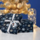 Cartão De Festividades Foto de Natal Elegante Blue Snowflakes