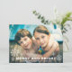 Cartão com fotos de feriado moderno e caprichoso com destaque para a tipografia simples e flocos de neve. personalize adicionando nomes e fotos.