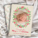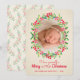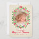Este charmoso cartão com fotos de férias apresenta a tipografia moderna e uma delicada pintura aquosa de folhas sagradas e bagas e coroa oval ao redor de sua foto em um simples fundo de libra de marfim pálido. MUDE o ditado, as fontes e a cor da fonte. **ADICIONE mais fotos ou texto na parte traseira com o link Personalizar mais. Selecione Matte para o papel mais pesado.