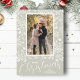 Folhas brancas, bagas e pontos em um fundo verde-claro (ou qualquer cor que combine com sua foto) destacam sua foto favorita com seus nomes e saudando em letras quentes na parte inferior. Selecione Matte para o papel mais pesado e alta definição para melhor qualidade de impressão.