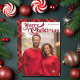 Cartão De Festividades Foto de Natal Merry tradicional Tartan Xadrez Verm