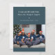 Este Cartões de foto de Natal religioso mostra as palavras "O Venha e Bebê-Lo, Nascer Rei dos Anjos" em um serifa elegante e versátil. A parte traseira do cartão apresenta um fundo azul de árvore de Natal com espaço para inserir sua própria mensagem.