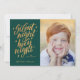 Cartão De Festividades Foto de Natal Silenciosa de Ouro Noturno Verde