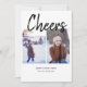 Cartão de ano novo moderno com pincel manuscrito Cheers e 2 fotos de tamanho vertical.
