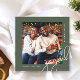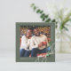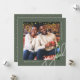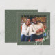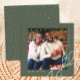 Este cartão de saudação de Natal de uma fotografia contemporânea apresenta uma elegante tipografia de escrita de caligrafia branca e uma fotografia num fundo verde-rústico. A parte de trás do cartão é um padrão verde e branco clássico de pontos. Compre esta coleção de feriados moderna para obter cores de na moda adicionais e coordenar acessórios de correio.
