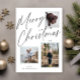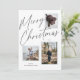 Este cartão casual, porém elegante, de fotos de feriado apresenta três fotos e lê "Feliz Natal" em letra preta.