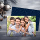 Esta simples placa de saudação horizontal para Anos novos apresenta um design mínimo. O design apresenta uma foto grande na frente e é acentuado com o script de estilo manuscrito de tendências "Feliz ano novo" na parte superior da foto.