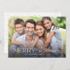 Uma simples placa natalícia com um design mínimo e uma foto horizontal que preenche a frente da placa plana. O design é acentuado com o tradicional script de estilo manuscrito "Feliz Natal" em cima da foto. O verso oferece texto personalizado para que você adicione sua própria mensagem pessoal.